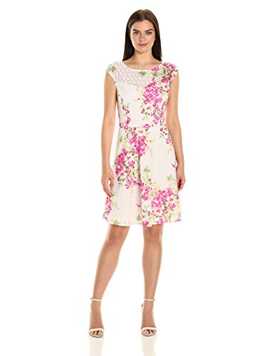 Sandra Darren Women's Extended Shoulder Printed Lace Fit and Flare Dress