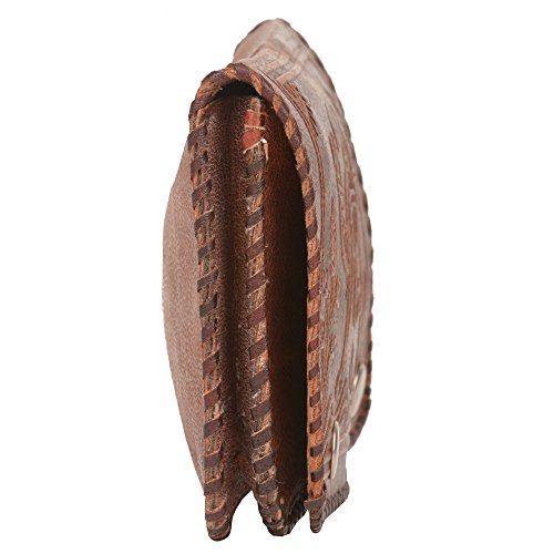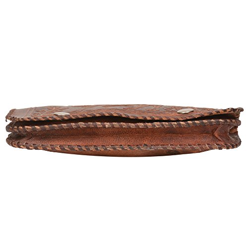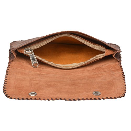 Binding : Apparel Product Description Carry this swank "Handcraft" genuine leather wallet exclusively for women to parties, gathering or to office and give other women's heartache. This trendy wallet comes with one inner compartment with a zipped pocket within it. The front of wallet is absolutely sober with a touch of modern look by plating the dark brown straps on the edges of the wallet and crafting it with traditional Camel engrossed painting. Carry your specs, pens and other essential in this premium leather wallet with ease. Be it a traditional or western look, you can carry it with both and look elegant. This bag having one zipper pocket along with two open compartment also having magnetic snap closure. 0