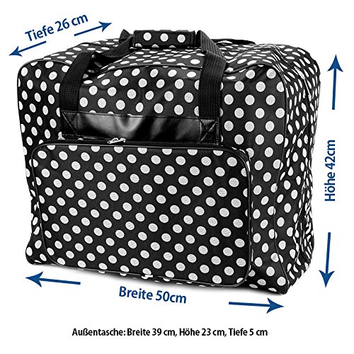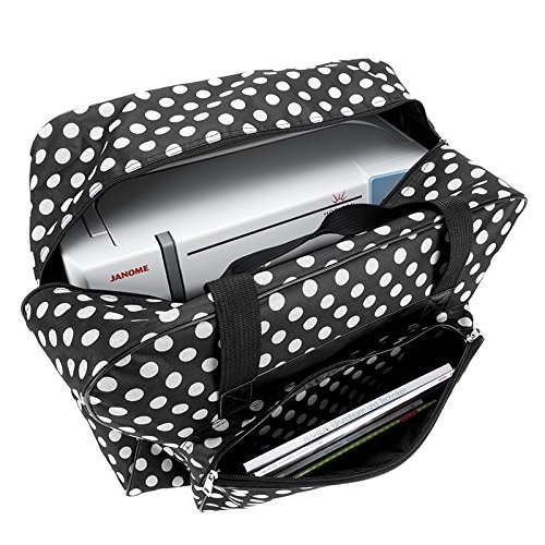-. Title : Hemline Dotty Sewing Machine Bag in Black Polka Dot