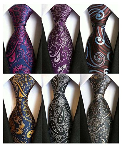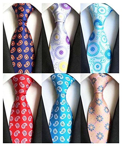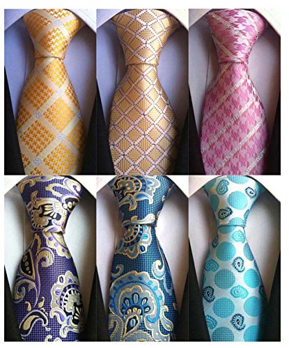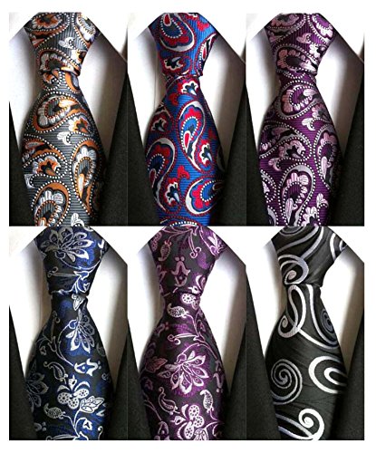 YanLen Pack of 6 Classic Men's Silk Polyester Tie Necktie Woven JACQUARD Neck Ties