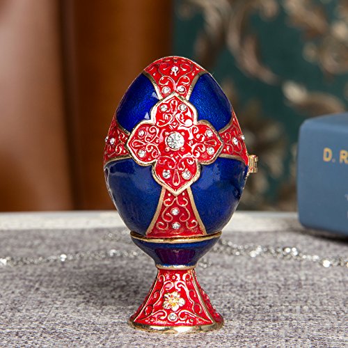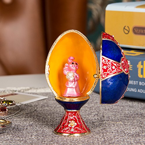 QIFU-Hand Painted Enameled Faberge Egg Decorative Hinged Jewelry Trinket Box Unique Gift For Home Decor