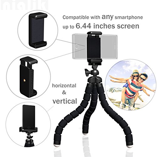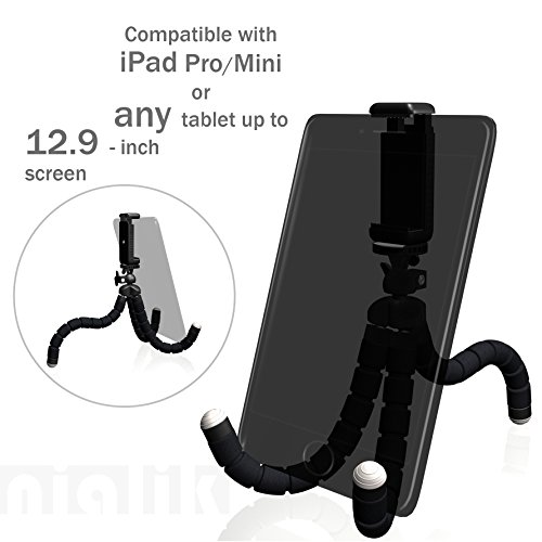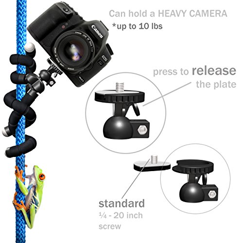 COMPATIBILITY: Nialik Flexible Tripod is compatible with iPhone or any smartphone that has up to 6.44 inches screen. It is also compatible with iPad Mini, iPad Pro, GoPro, DSLR, mirrorless cameras or camcorders, hot shoe SPEEDLIGHTS, flashlights and sound recorders with standard ¼ - 20 inch screw. This flexible tripod for DSLR can hold even HEAVY PROFESSIONAL CAMERA.