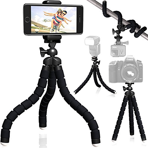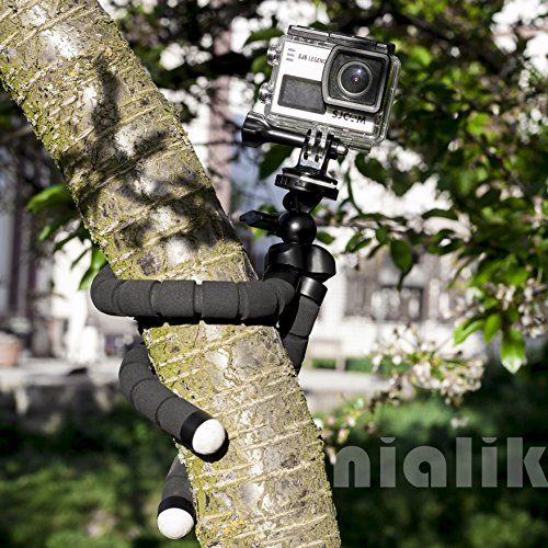 IN THE BOX: Flexible 10 inch tripod, camera plate- ¼ x 20 inch, iPhone mount, GoPro mount and hot shoe speedlight adapter. With Nialik flexible MINI TRIPOD, you can easily mount your phone, DSLR camera, GoPro and also your flashlight to anything around you.