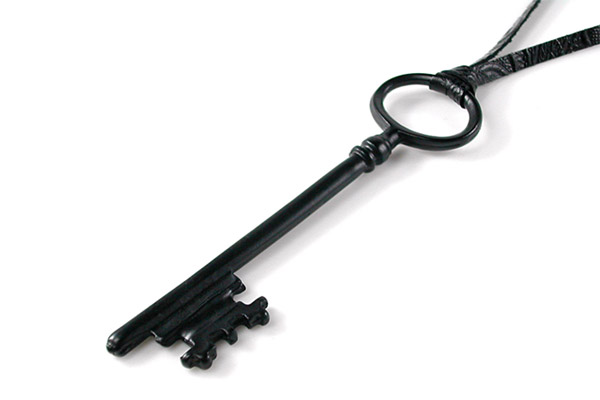 고급스러운 블랙 키 펜던트와 에스닉 패턴의 가죽줄의 조화가 스타일리쉬한 목걸이입니다. 올 블랙 컬러로 세팅을 해서 블랙 매니아들에게 희소식이 될 목걸이입니다. 블랙 앤 화이트 패션에 매치하시면 멋지게 어울리는 아이템입니다.