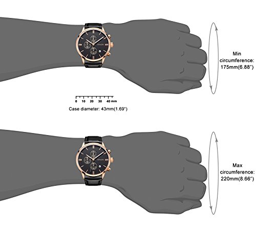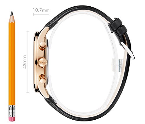 Big black face and rose gold case, soft calfskin leather strap with buckle closure