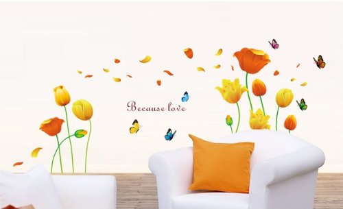-. Binding : Kitchen -. Brand : Kappier -. Color : Red -. EAN : 0030915413770 -. Feature : Includes large orange/yellow tulips, petals and butterflies / Applies to any smooth surface / Removable and reusable with no sticky residue / Dimension of product sheet: 23Wx35L -. MPN : 4126697 -. PackageQuantity : 1 -. PartNumber : 4126697 -. ProductGroup : Home -. ProductTypeName : HOME -. Size : 23Wx35L -. Title : Kappier® Beautiful Large Long Stem Orange and Yellow Tulips with Elegance and Grace Peel & Stick Wall Decals -. UPC : 030915413770