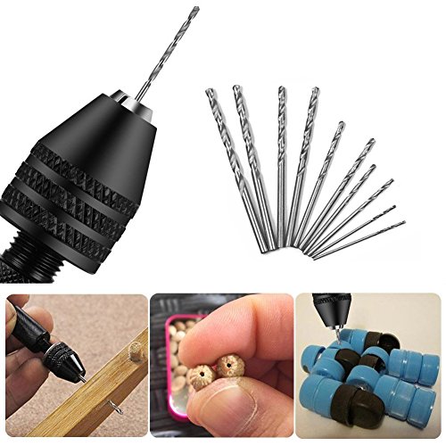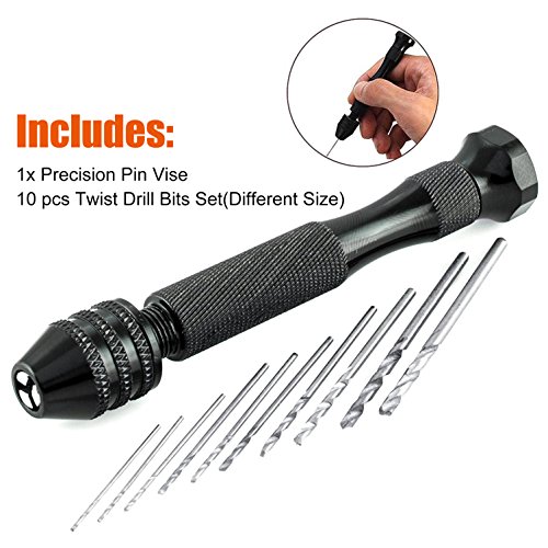 Pin Vise - Small Hand Drill with Mini Micro Twist Drill Bits Set of 11,for Models Hobby and Jewelry