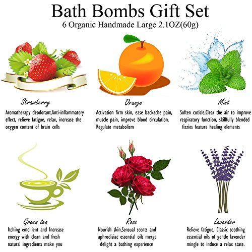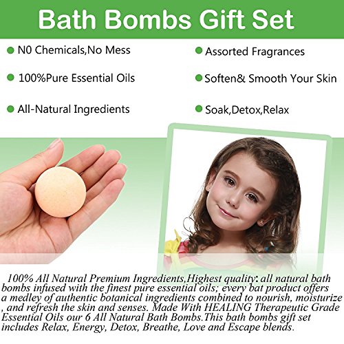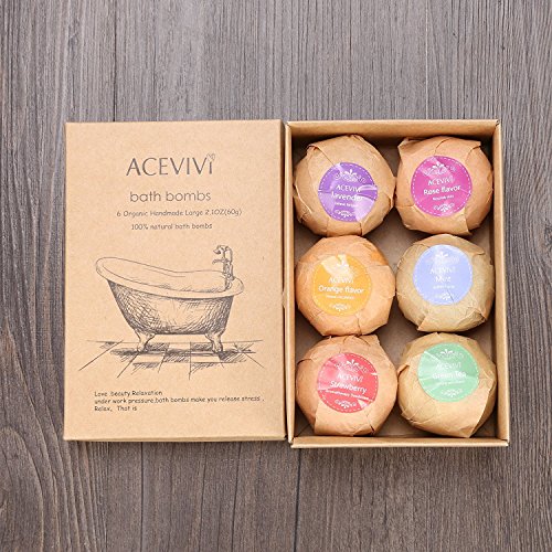 A collection of 6 unique 2.1 oz (golf ball size) Bath Bombs made with natural ingredients. Color: Multi-colors One Ball Size: 4.5cm/ 1.8inch Each Ball's Net Weight: 2.1oz (60g) Package content: 1 Box x Bath Bombs (6pcs) Box size: 14.5 x 10 x 5cm/ 5.7 x 3.9 x 2.0inch (L x W x H) Directions: Simply drop one of our Organic Moisturizing Bath Bombs in your bath water, sit back and enjoy the explosion of aroma, colors, butters, oils, salts and other all natural goodness! If soaking in a jetted tub be sure to clean your tub after use to remove the oils. We do not recommend the use of jets while using a bath bomb. Using Tips: Once a week to three times, soak for 20 minutes, the water temperature is maintained at 36 degree Celsiue, soaked in water after washing clean (usually a weekly use of 2-3 times). Why ACEVIVI 6 Bath Bombs Gift Set? - A unique mix of bath bombs infused with essential oils to relax, de-stress, detax and help with sinus relief. - A great gift for mothers, women, bridal showers, teen girls, kids, and men. They make great mothers day gifts. This gift set is sure to impress. - Enjoy Spa quality experience in the comfort of your home. A hot bath with these bath bombs provides therapeutic value such as stress relief, relief of stiff joints and sore muscles, sinus and congestion relief, mood enhancement and is an excellent moisturizer for dry skin. Our gentle formula keeps your skin healthy and supple while providing aromatherapy to balance your overall mood. 0 |