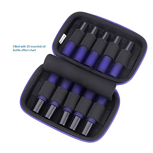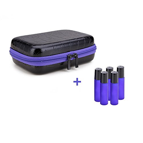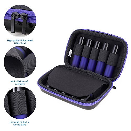 Essential Oils Carrying Case Bag Travel Roller Storage Holder with 5 Aromatherapy Rollerball Bottles for doTERRA, Young Living..(Purple - 16 Bottle)
