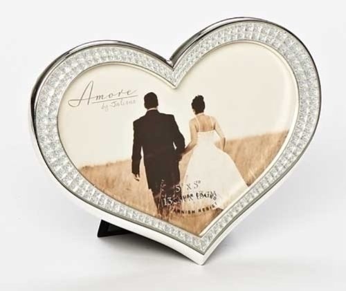 -. Title : Jeweled Heart Rhinestone Silver Plated 5" x 5" Designer Photo Frame Amore by Juliana