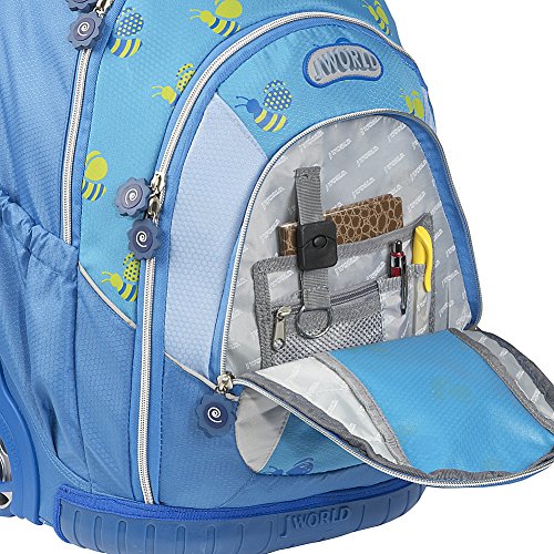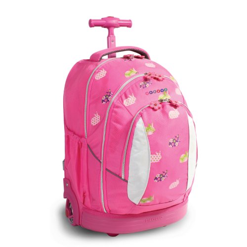 -. Brand : J World New York -. Department : unisex-adult -. Feature : Recessed three stage locking handle with push button / Soft and noiseless wheels for stable and controlled motion / Air mesh cushion padded shoulder straps and back with slip-in system / Color matched bottom mold for protection / Padded grip handle -. Label : J World New York -. Manufacturer : J World New York -. Model : KRB-001 -. PackageQuantity : 1 -. ProductGroup : Apparel -. ProductTypeName : LAGE -. Publisher : J World New York -. Size : One Size -. Studio : J World New York -. Title : J World New York Sweet Kids Rolling Backpack (Kids ages 5-9)