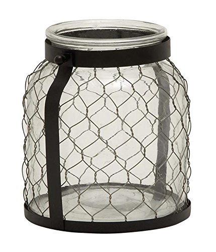 -. Title : Deco 79 24042 Metal Glass Lantern, 8"W/9"H