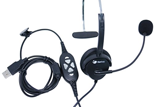 Earbay MHP-340 USB Headset with Noise Cancelling Microphone and Volume Control for Call Center