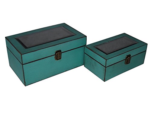 Cheung's FP-3993-2T Wooden Treasure Box with Beveled Mirror| Set of 2| Teal