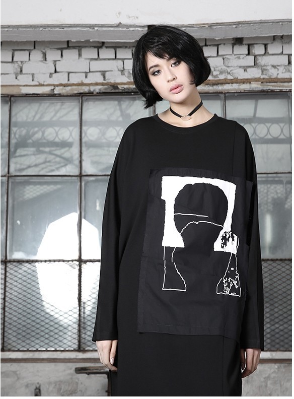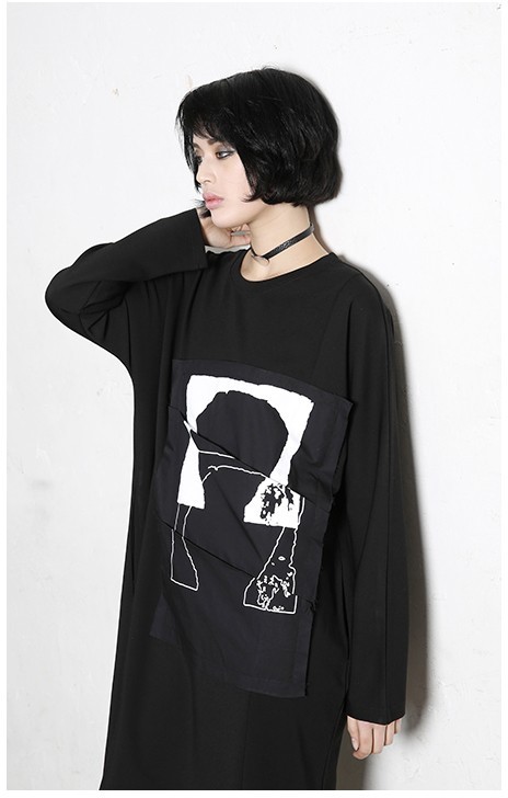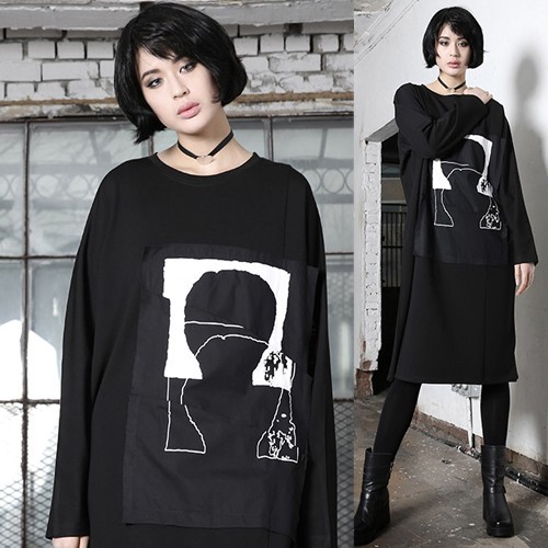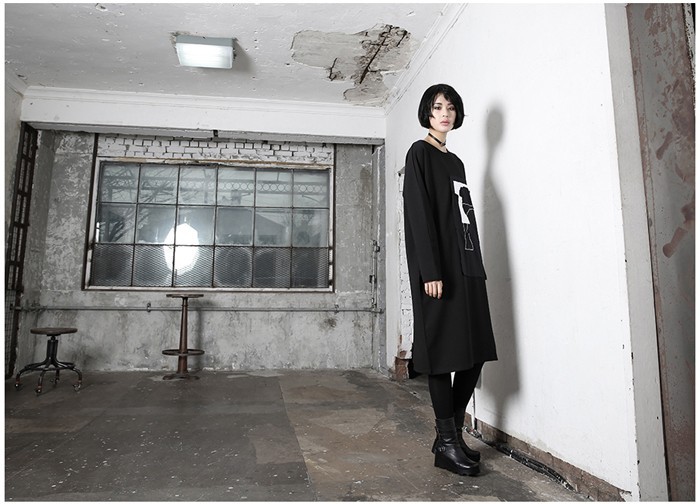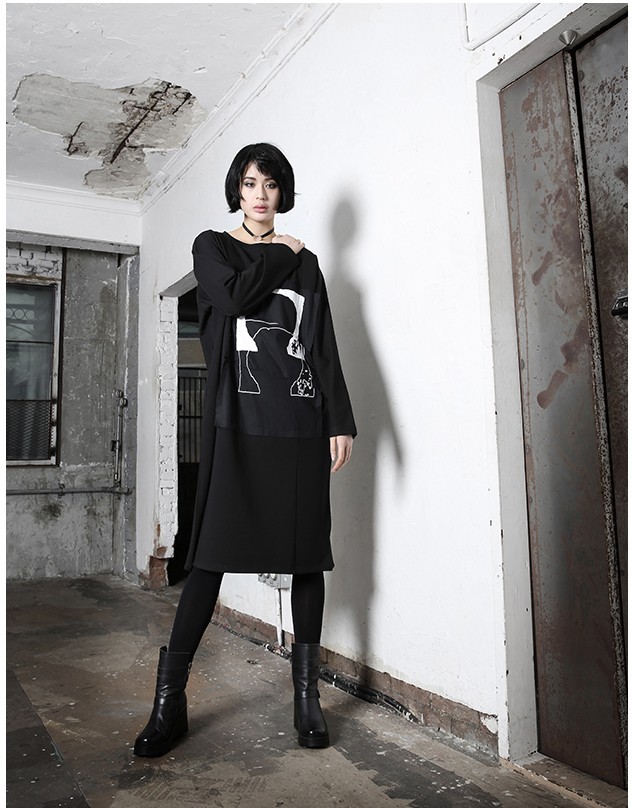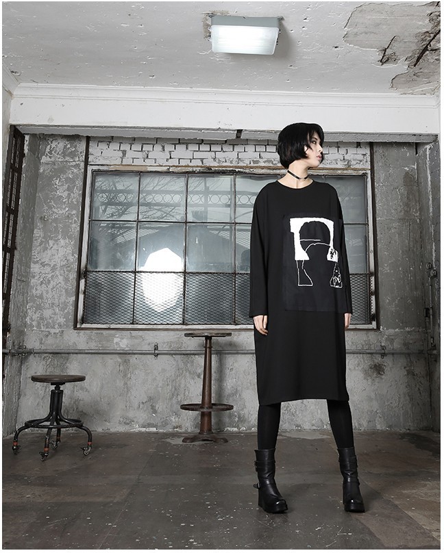 商品名:ワンピース レディース 膝丈 プリント 個性的 長袖 秋 冬 2017 モード系 個性的 40代 ファッション