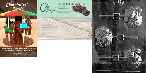 Cybrtrayd 45St25Bk-T030 'Turkey Lolly' Thanksgiving Chocolate Candy Mold with 25 4.5-Inch Lollipop Sticks and Chocolatier's Guide