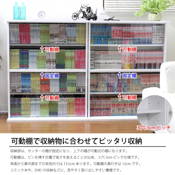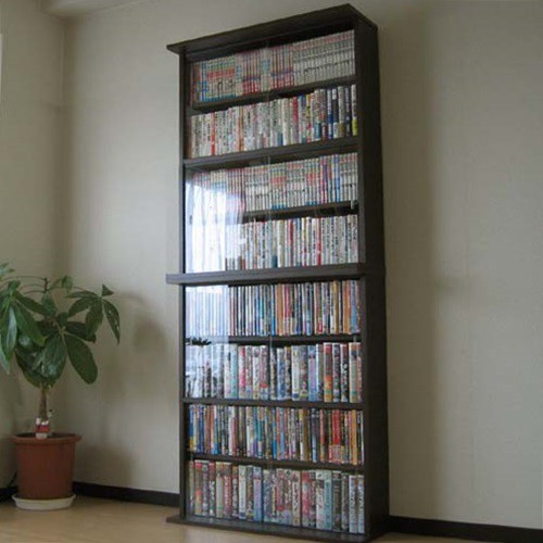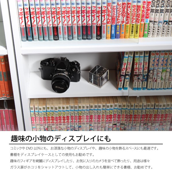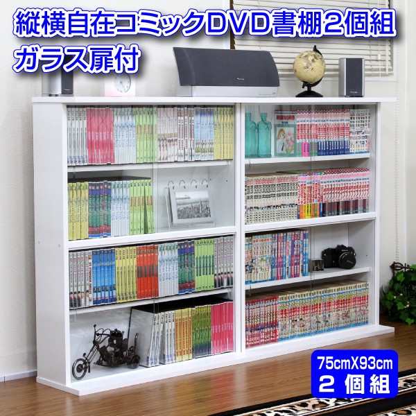 コミック収納 本棚 ガラス扉付き 書棚 ガラス扉付 ガラス扉 薄型 スリム 省スペース DVD収納 縦横ラック 2個組 日本製 ホワイト ダークブラウン