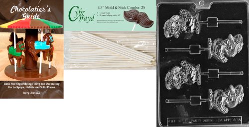Cybrtrayd 45St25Bk-E403 'Duck with Hat Lolly' Easter Chocolate Candy Mold with 25 4.5-Inch Lollipop Sticks and Chocolatier's Guide