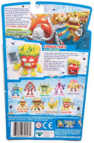 -. Binding : Toy -. Brand : Grossery Gang -. Color : Multi Color -. EAN : 0630996690574 -. Feature : Always ready for some deep fried action, Fungus Fries takes no P.R.Isoners! / Each Action figure comes with its own Exclusive Grossery Gang weapon / All action figures are fully articulated and work with all three playsets! / 9 action figures to collect! -. IsAdultProduct : 0 -. Label : Moose Toys Import -. Manufacturer : Moose Toys Import -. Model : 69057 -. MPN : 69057 -. NumberOfItems : 1 -. PackageQuantity : 1 -. PartNumber : 69057 -. ProductGroup : Toy -. ProductTypeName : TOYS_AND_GAMES -. Publisher : Moose Toys Import -. ReleaseDate : 2017-10-01 -. Size : 1.46'' x 2.44'' x 3.15'' -. Studio : Moose Toys Import -. Title : The Grossery Gang S3 Action Figurine - Fungus Fries -. UPC : 630996690574 -. Warranty : No Warranty