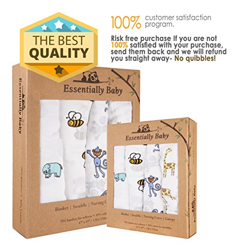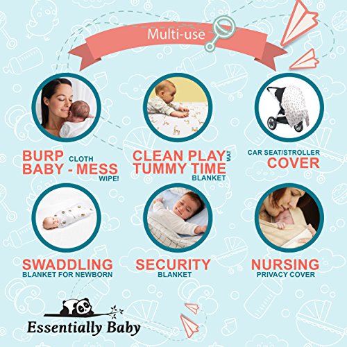 THESE CUTE MUSLINS ARE MULTI-USE AND WILL SAVE YOUR SHOULDERS FROM CARRYING ALL THAT BABY STUFF - We know that everything going into the changing bag needs to have at least 2 uses and these swaddles can be used in so many ways- a Nursing Cover (they are light and breathable), a burp cloth, a shade to keep off the sun while baby is in her stroller or as a play/changing mat to keep him off the grubby floor! The perfect essential baby all-rounder