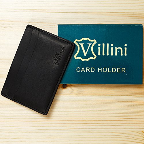 -. Feature : DIMENSIONS - 3.93x2.75x0.2 inches. It fits perfectly in your pocket and can hold 4 cards and some folded cash. / LUXURY VINTAGE STYLE - Villini offers best Vintage style credit card wallet made of premium crazy-horse leather. / AFFORDABLE P.R.ICE - The card case protector is made from luxury genuine leather - The actual P.R.Ice of the leather goods is higher than our promotion P.R.Ice!Hurry and order Villini Leather Credit Card Holder at the present promotion P.R.Ice! The P.R.Ice will go up soon! / ULTRA SLIM and COMPACT -If you don't want to carry a bulging wallet when shopping ,traveling, jogging or working out in a gym, take a 1.7mm thick Villini ultra slim thin Credit Case it can put all necessary things. / 3 YEAR WARRANTY - We are sure of the amazing quality of our pretty custom product. Although, that our card Case is made of Impeccable Genuine Leather 1,7mm thick and have 3 Years minimum of the service a life.