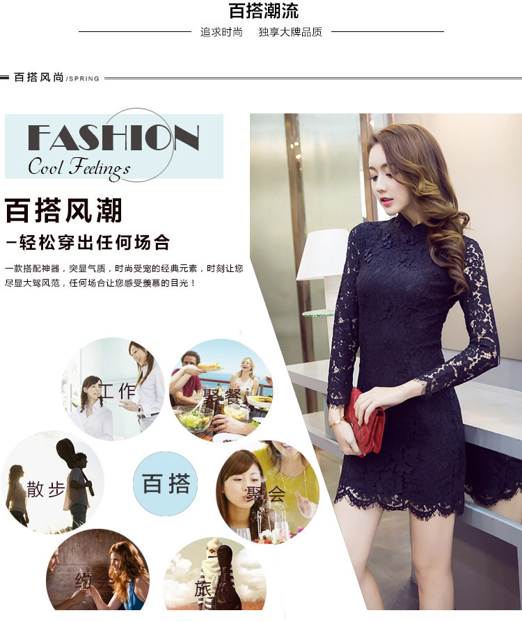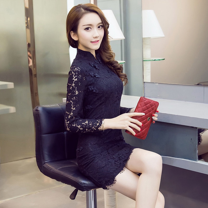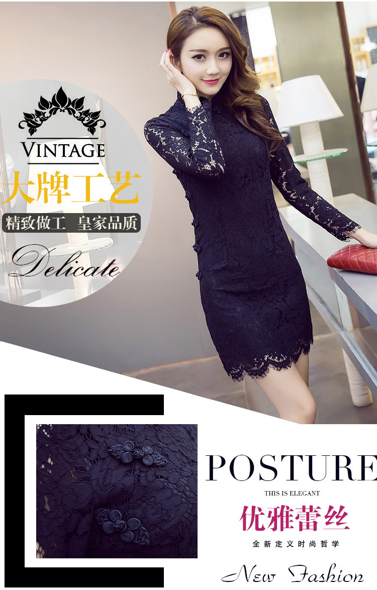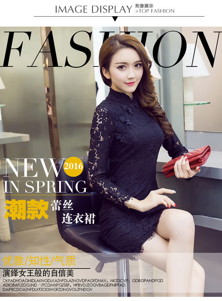 春装新款女装打底裙蕾丝复古旗袍修身显瘦韩版性感包臀连衣裙 |