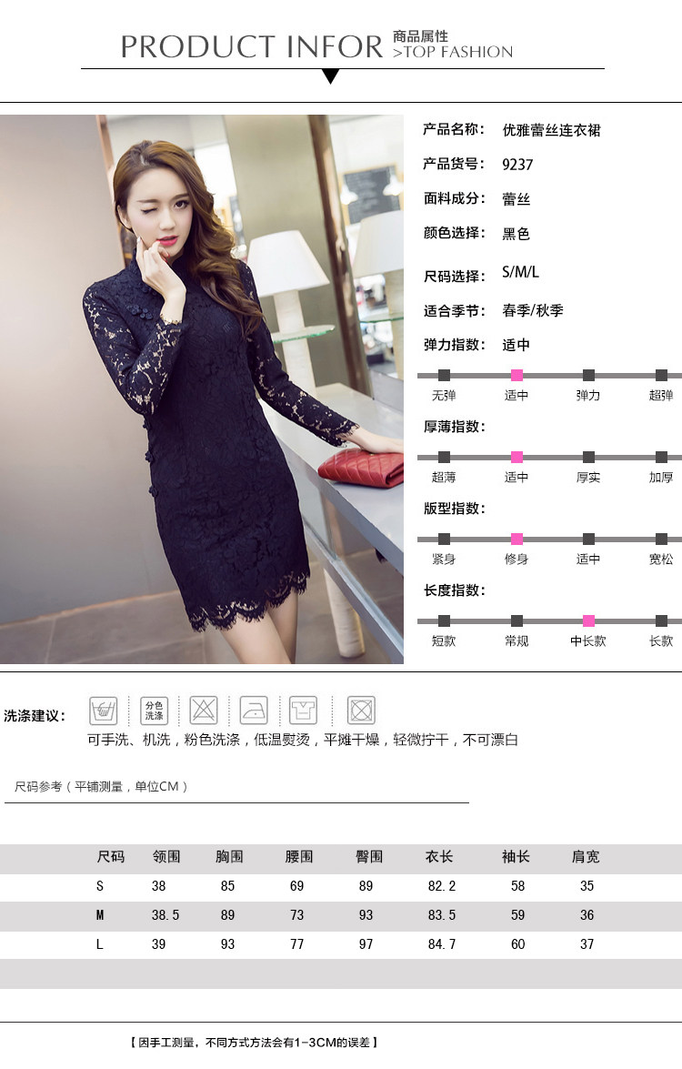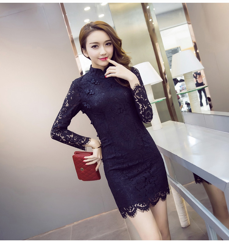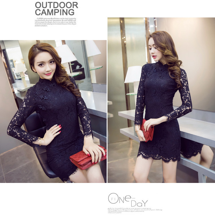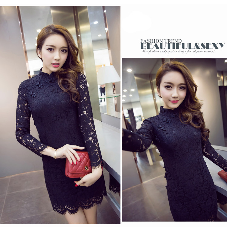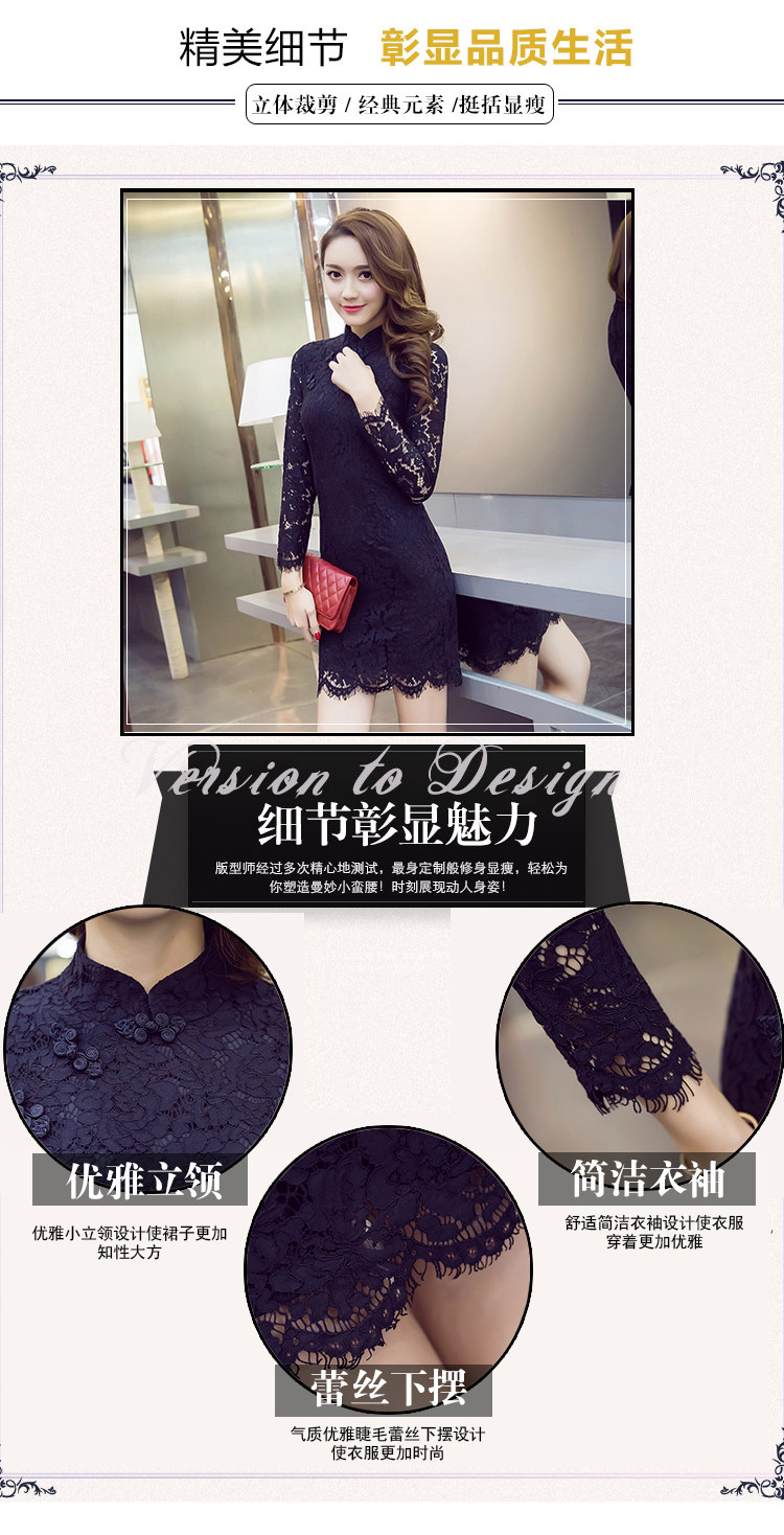 春装新款女装打底裙蕾丝复古旗袍修身显瘦韩版性感包臀连衣裙 |