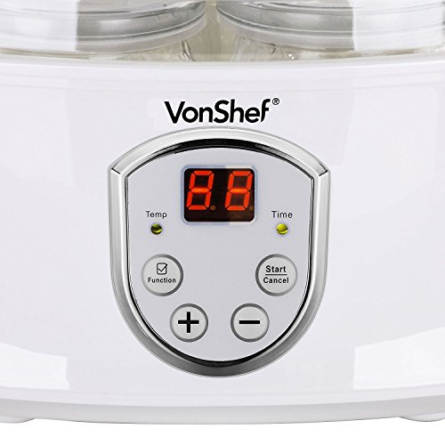 VonShef Automatic Digital Yogurt Maker with LCD Display Screen and 7 x 6.8oz Yogurt Jars – Make Natural Healthy Yogurt at Home