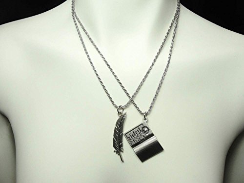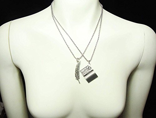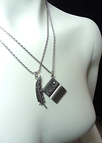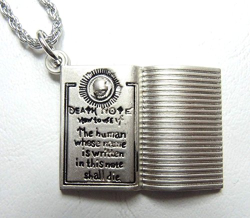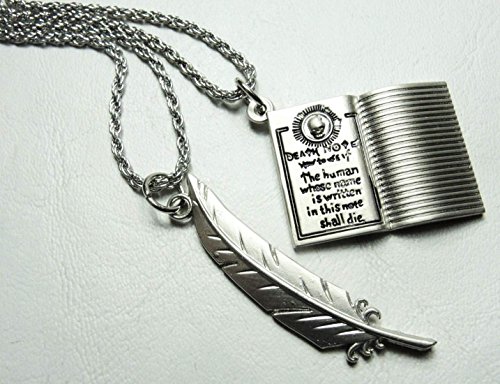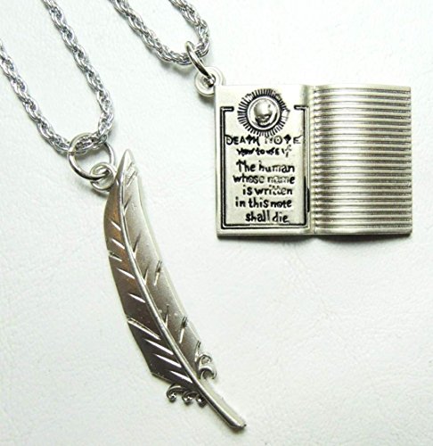 Studio : China Publisher : China Binding : Toy Product Description Death Note is the story of Light Yagami, a high school student who finds a supernatural notebook which was dropped on Earth by a death god. The notebook comes with this simple instruction: The human whose name is written in this note shall die. As you might imagine, Yagami cannot resist using the notebook, and much mayhem ensues. This necklace includes two pendants: the notebook, open to the page where the instruction for its use is presented, and a quill, with which names can be written on its blank pages. Comes with an elegant silver-tone chain.. 0