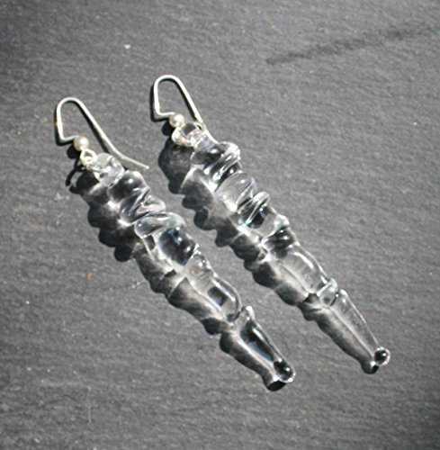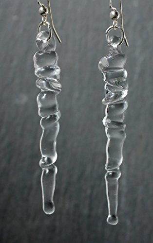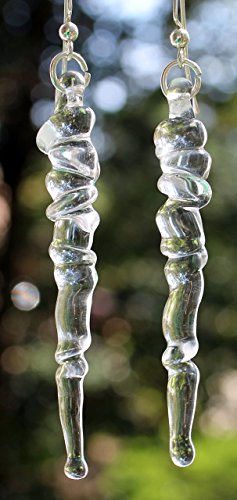 -. Title : Icicle Earrings, Hand Blown Jewelry, Christmas Ornaments Dangle Winter Sterling Silver Natural Style