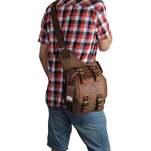 - Title : Mens Boys Vintage Canvas Shoulder Military Messenger Bag Sling School Bags Chest Military Leather Patchwork Messenger Bag- Great Christmas Birthday Gift for Families and Friends