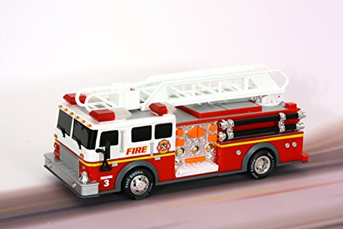 - Feature : Ever wonder how people in danger get rescued from tall buildings / This Hook and Ladder fire truck is how / This hook and ladder fire truck features motorized forward drive, engine and rescue sounds, music and vocal phrases / Recommended for ages 3 and up / 3 "AA" batteries included