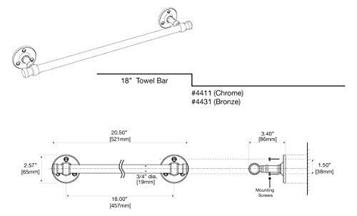 Gatco 4411 Cafe 18” Towel Bar, Chrome