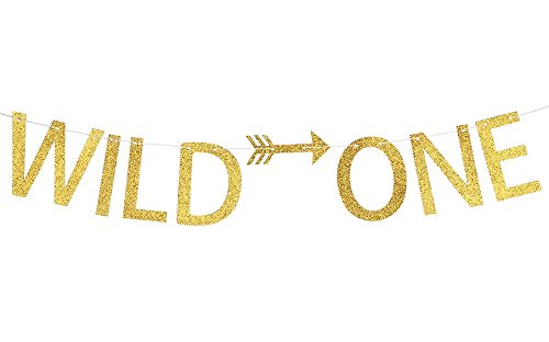 -. Title : Gold Glitter Wild One Banner, Baby Shower First Birthday Banner, 1st Birthday Party Decorations