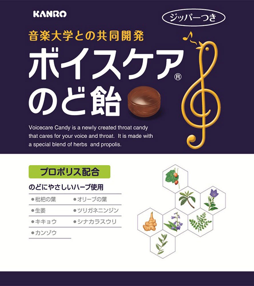 Throat candy for people who cherish voice, developed jointly by Kanro and music university.