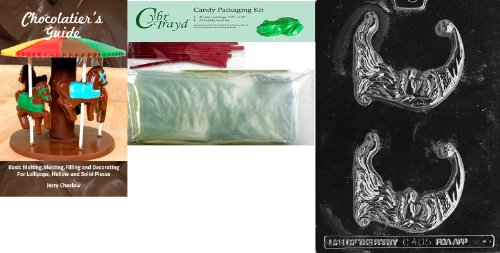 Cybrtrayd Half Moon Santa Chocolate Mold with Chocolatier's Bundle of 25 Cello Bags, 25 Red Twist Ties and Chocolatier's Guide