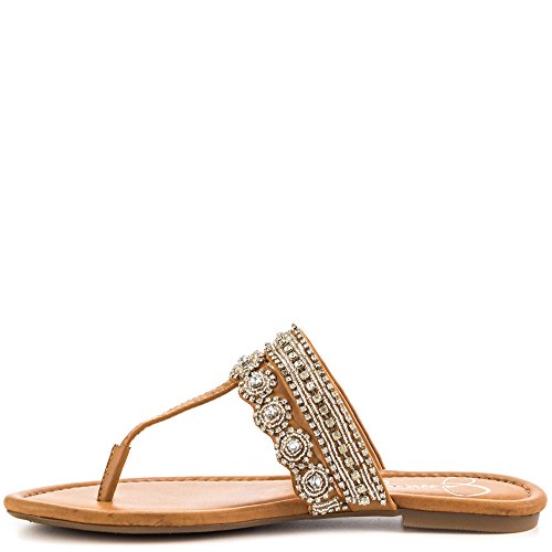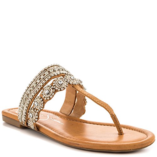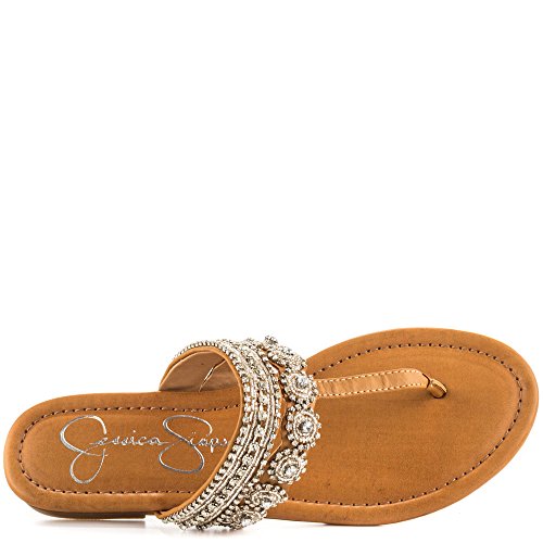 The understated sparkle of the Jessica Simpson Roelle sandal is sure to get you noticed. This women's dress flip-flop sandal has a faux leather upper covered in beads and jewels, adding brilliant sparkle to every step you take atop the cushioned footbed. The Jessica Simpson Roelle toe-post sandal has a flexible, durable rubber sole to carry you securely through your day. Our selection of Jessica Simpson's shoes includes various styles of heels, pumps, dress pumps, sandals, boots and wedges. Jessica Simpson's trendy and popular shoes are the perfect addition to your shoe collection. At Shoemagoo you can shop various Jessica Simpson dress pumps for every ocassion, high heeled sandals to wear with your party dresses and trendy leather ballerina flats to wear with all your outfits. Jessica Simpson also offers leather and suede ankle boots and flat knee-high boots. Shop a wide selection of wedges, oxfords, sandals, espadrilles and high-heel boots at Shoemagoo in various styles, sizes and shoe widths.