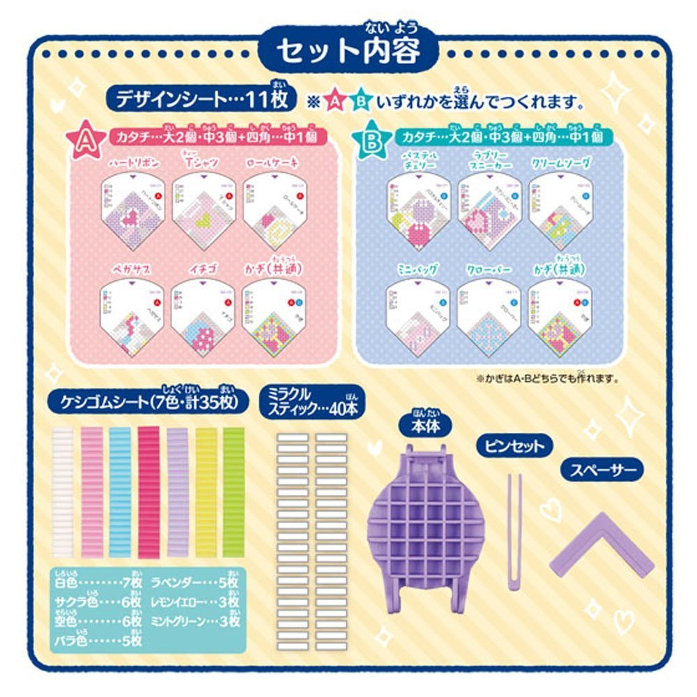 Of course, you can use the work as an eraser !! [Content of set] 1 oriquiqui body, 1 spacer, 1 tweezers, 35 sheets of kenji rubber sheet 7 colors, 40 miracle sticks, 11 design sheets