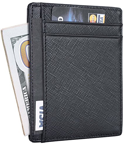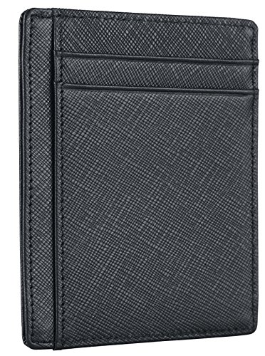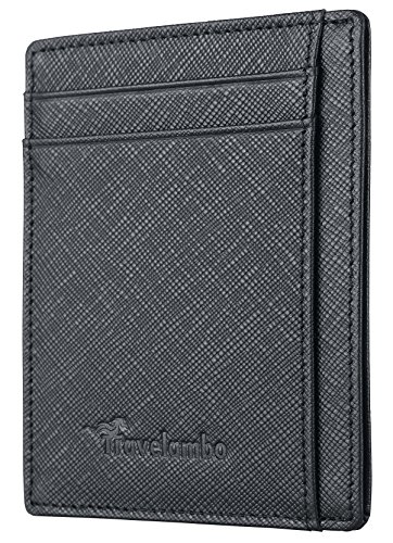 Travelambo RFID Front Pocket Minimalist Slim Wallet Genuine Leather Small Size (Crosshatch black)