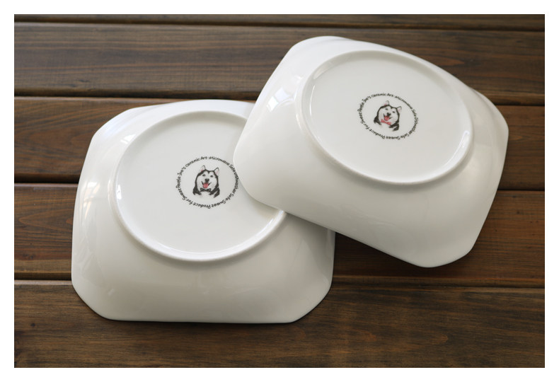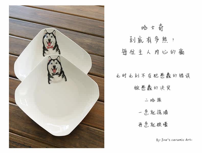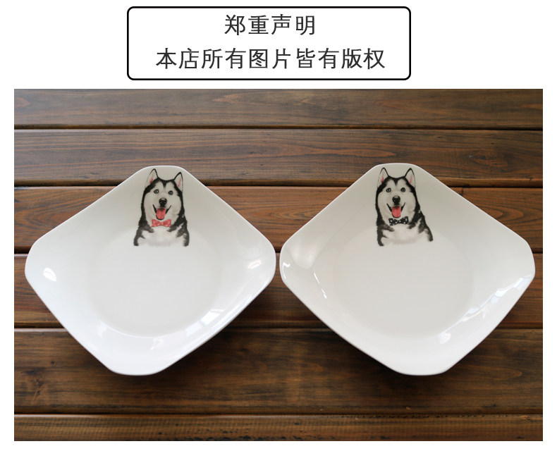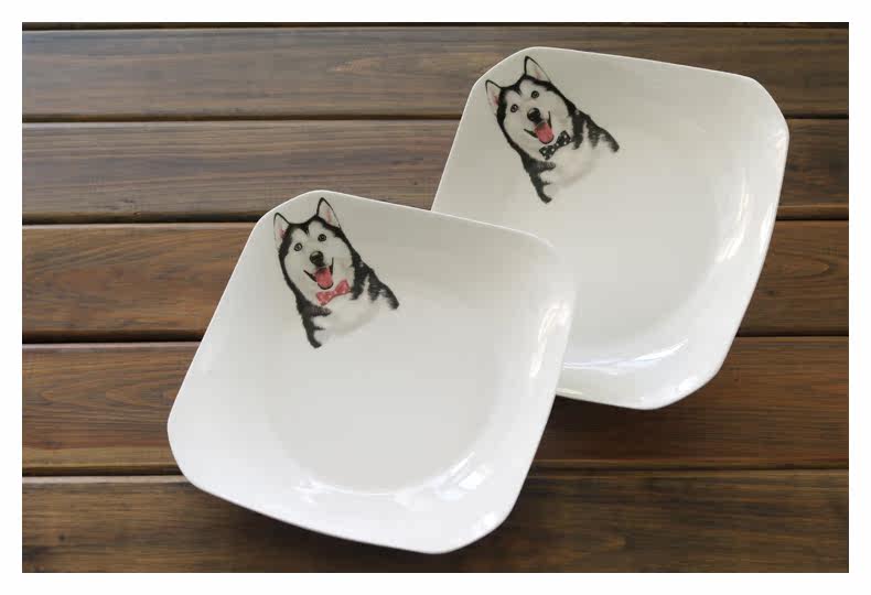 简约宠物餐具创意哈士奇陶瓷四方盘子早餐盘西餐盘点心正方形菜盘