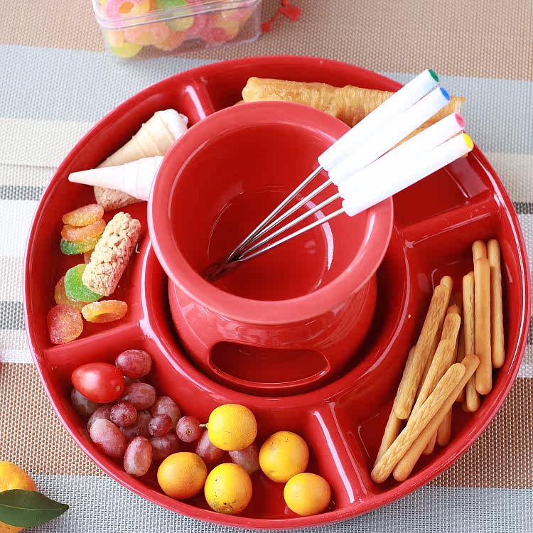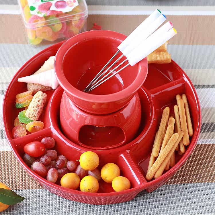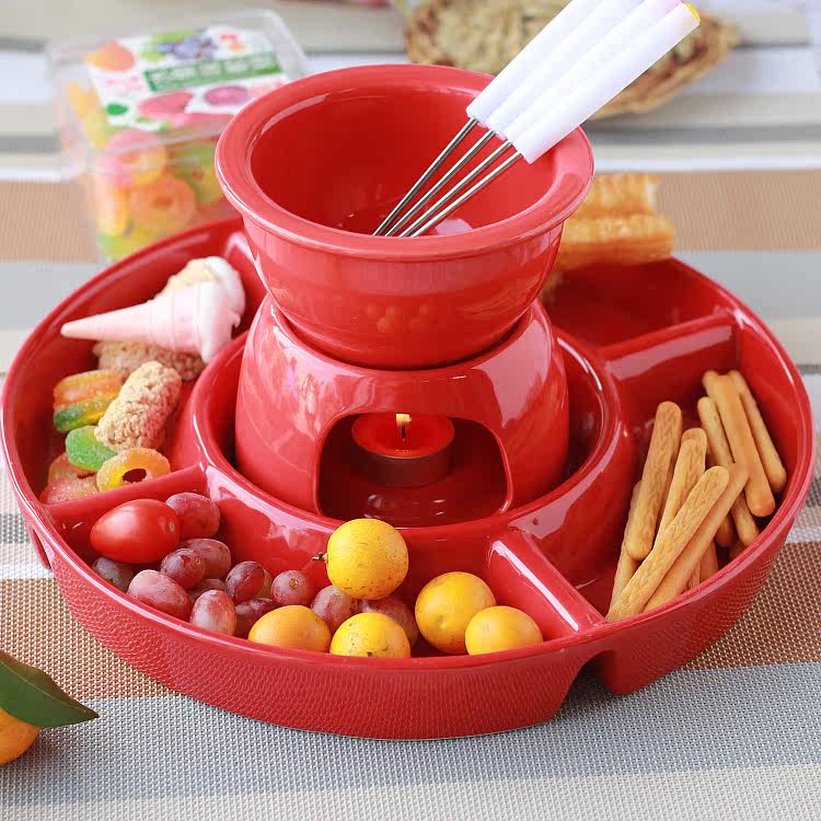 商品组合说明:陶瓷火锅炉+底盘+4把水果叉+2个无烟蜡烛