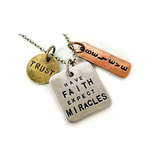 -. Title : Silver-Tone 'Have Faith Expect Miracles' 'Believe' 'Trust' Engraved Pendant Necklace 2.5 x 2.5cm With 18 Inch Chain