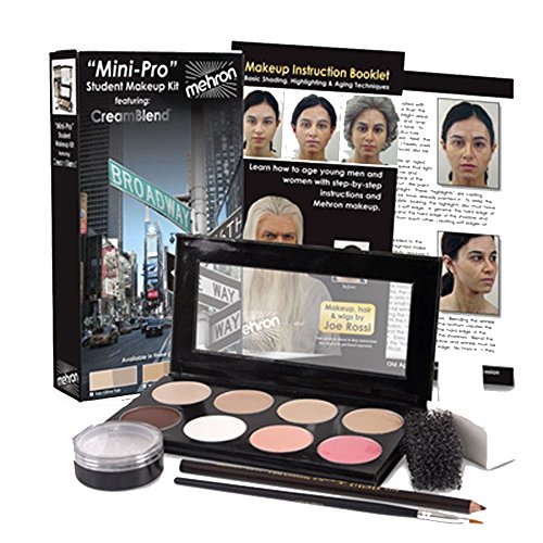 -. Feature : New Edition Student Kit By Mehron / The New KMP contains an 8 color palette with 4 foundation shades each good for 7-10 applications / 2 eye creams, 2 lip/cheek creams, Colorset powder, Eye liner pencil, / Stipple sponge, Non-latex sponge, Powder puff, Instruction booklet / Another fine product by Mehron