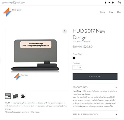 -. Feature : HUD 2017 NEW DESIGN / We design a new reflective panel that improves transparency by 50% with better reflection on a difficult light condition. / NextStep HUD Image Reflector turns any smartphone into a head-up display. It can be used with any car and it will reflect any HUD-based smartphone app clearly in front of your eyesight, letting you see navigation clearly without lowering head and most important, allows you to drive more safely / HUD -Head Up Display, is a method to display GPS navigation image on a reflector in front of your head so that you can see it without lowering head while driving. Almost all navigation apps have HUD mode. / Package Contain: 1pcs x Universal Smartphone holder 1pcs x Transparent Reflection Film 1pcs x Black non-slip mat 1pcs x Clean cloth 1pcs x User manual
