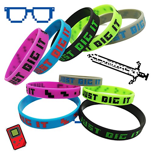 -. Feature : 15 Pack Pixelated theme "Just Dig it" bracelets per package (3 of each color shown) / 100% Money Back Guarantee of High Strength Standard Quality - Warranty by Crush Retro LLC / Features diamond and emerald pattern from your favorite pixel video game! / SAFE FUN AND PLAY COLORED BANDS FOR YOUR GAME TRUCK PARTY ANSWERS.Perfect toy for toddler, boys, girls, children, kids, adults and everyone to have fun, play, share or exchange with their friends. / SHARE AND EXCHANGE WITH FAMILY AND FRIENDS. The Pixel bracelet bands are perfect to teach your children to share, exchange and can be used as an educational learning toy or game for kids.