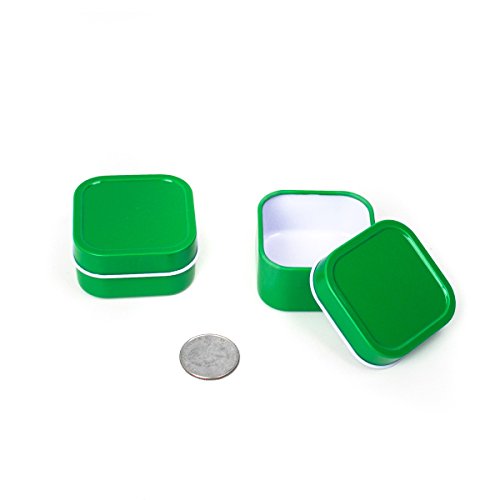 HIGH QUALITY - Mimi Pack Premium Green Shallow Square Solid Top 2 oz Tin Cans are made from premium steel tin plates. These high quality tins are made to be strong and durable.