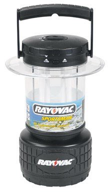 Studio : Spectrum/Rayovac Publisher : Spectrum/Rayovac Product Description 8 "D" Cell Sportsman Area Lantern, With Twin 9W Fluorescent U8 Tubes, 300 Lumens, 3 Mode: High, Low Night Light, Lights Up To 50' Radius, Run Time: 14 Hour Twin Tube, 30 Hours Single Tube, Durable Rubber Base Handle, Water Resistant, Easy Battery Replacement System, Runs On 8 "D" Batteries, Not Included, Emergency Notice, 1 Bulb Will Turn Off When Batteries Need To Be Replaced, For Replacement Bulbs Use TV #418-613, Lifetime Warranty. 0
