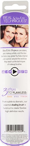 Designed with pro makeup artist Samantha Chapman, Real Techniques brushes combine high-tech materials with innovative design to make creating a pixel-perfect look easier than ever: Taklon bristles are ultra plush and smoother than the hair you'll find in other brushes. Since taklon is synthetic, it's 100% cruelty-free. The soft fibers help create a flawless, high-definition finish in any type of light, from sunlight to harsh indoor lighting. The color-coded system corresponds to the key steps of makeup application so you can create a flawless base (copper), enhanced eyes (purple), and the perfect finish like a pro (pink). Each brush head is hand-cut to the perfect shape, allowing for precise application from dense coverage to a soft, delicate finish. The collection is suitable for a wide range of products and every makeup need – from powders, creams, and liquids to mineral makeup, highlighter, and shimmer. Brush names on the handles make for easy reference when creating your favorite look.Feature
