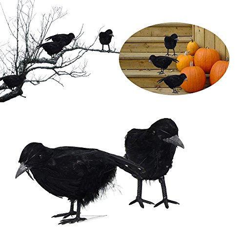 - 2 pieces Realistic Crow Halloween Black Feathered Bird.