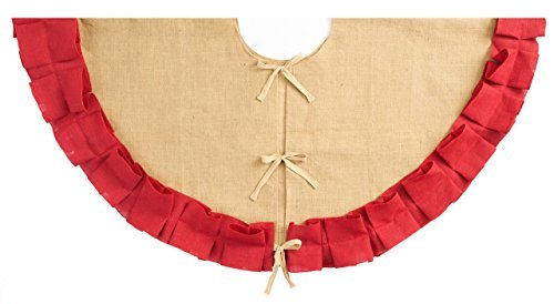 Arcadia Home TJ8 Handmade Rustic Burlap Tree Skirt with Ruffle Edge, Red